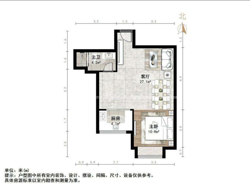 朝向南北 建筑面积63㎡