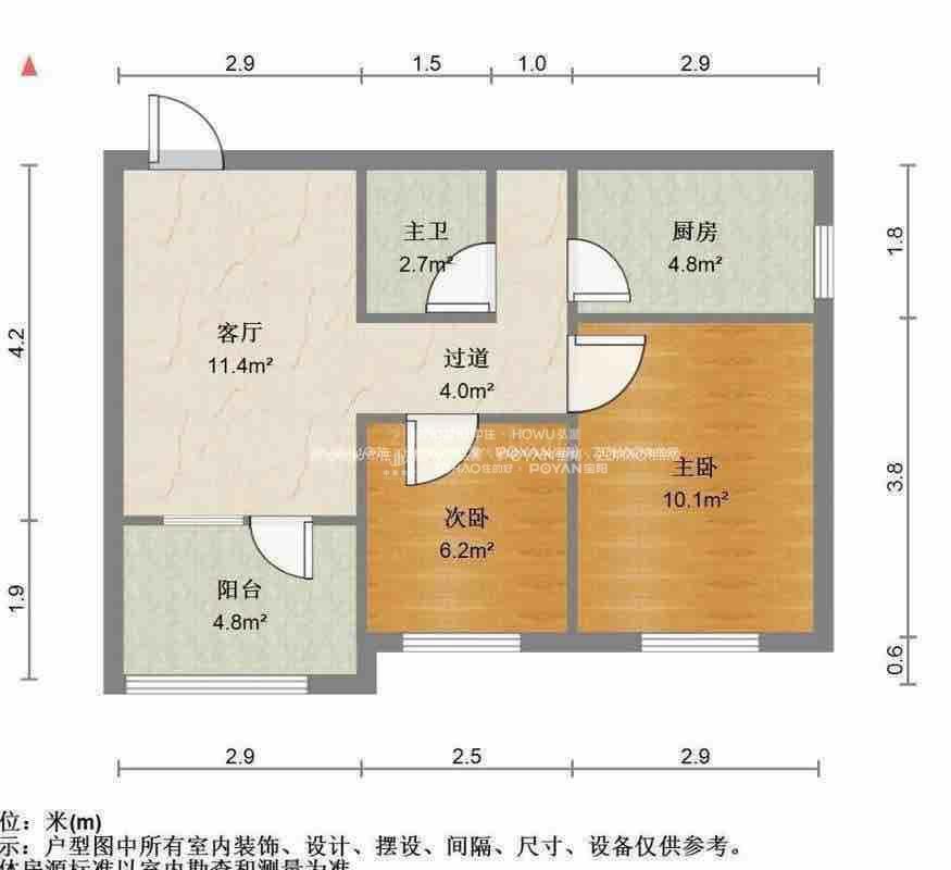 厅室2室1厅1卫1阳台