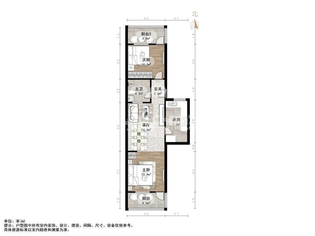 朝向南北 建筑面积80㎡