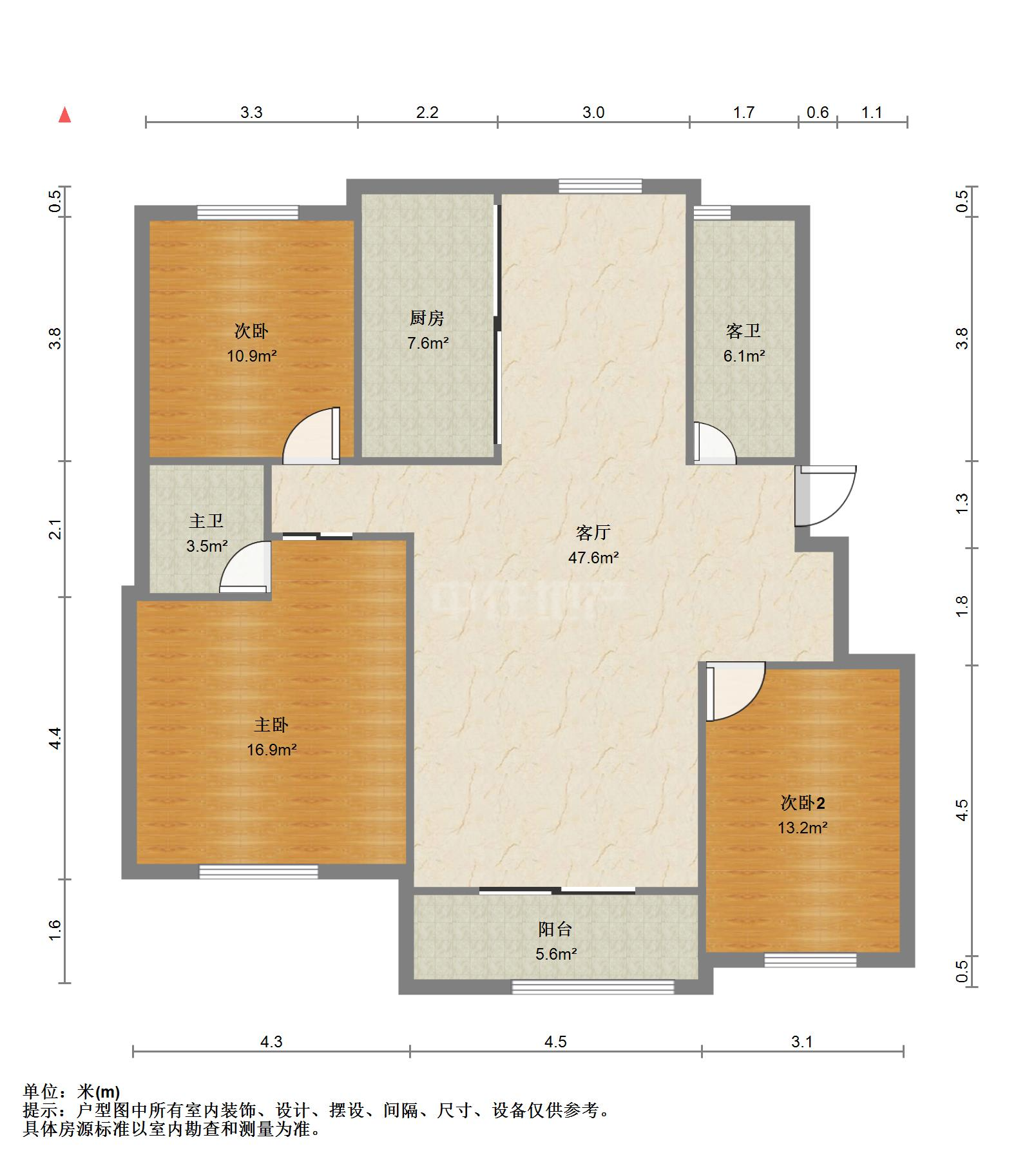 厅室3室2厅2卫1阳台