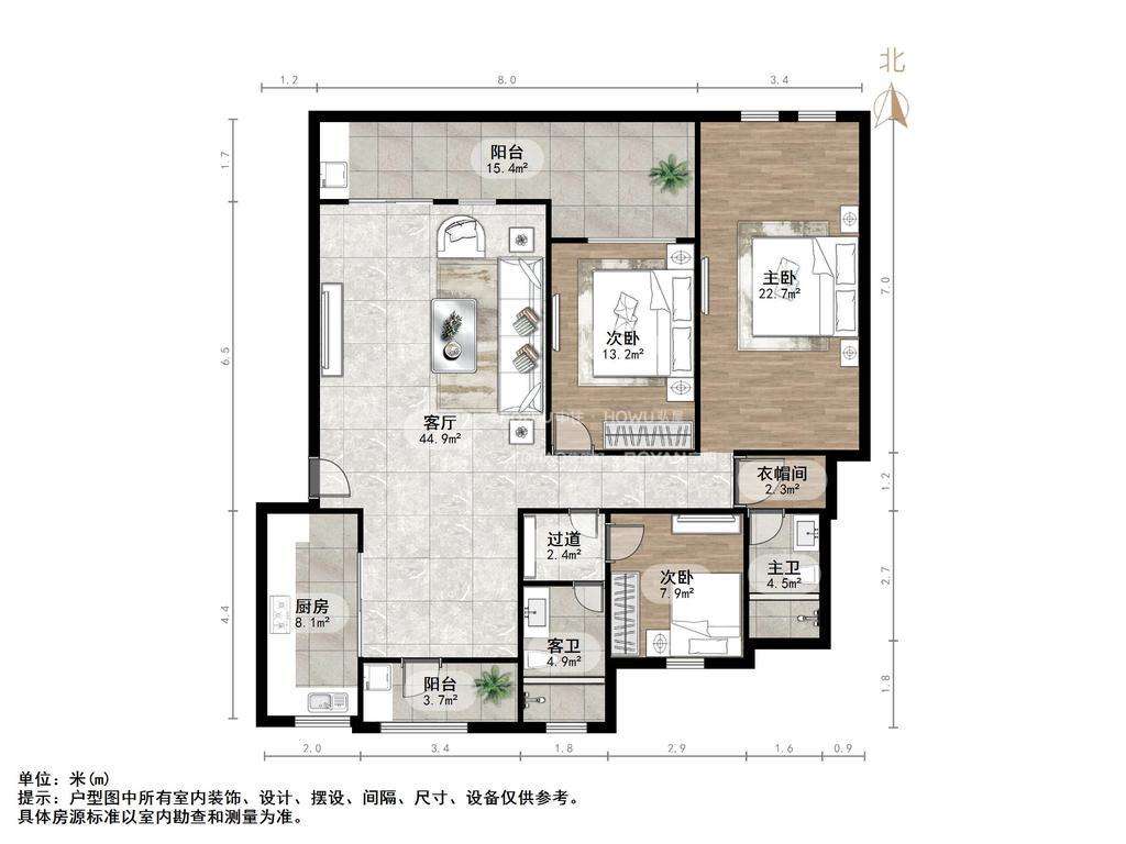 厅室3室2厅2卫1阳台