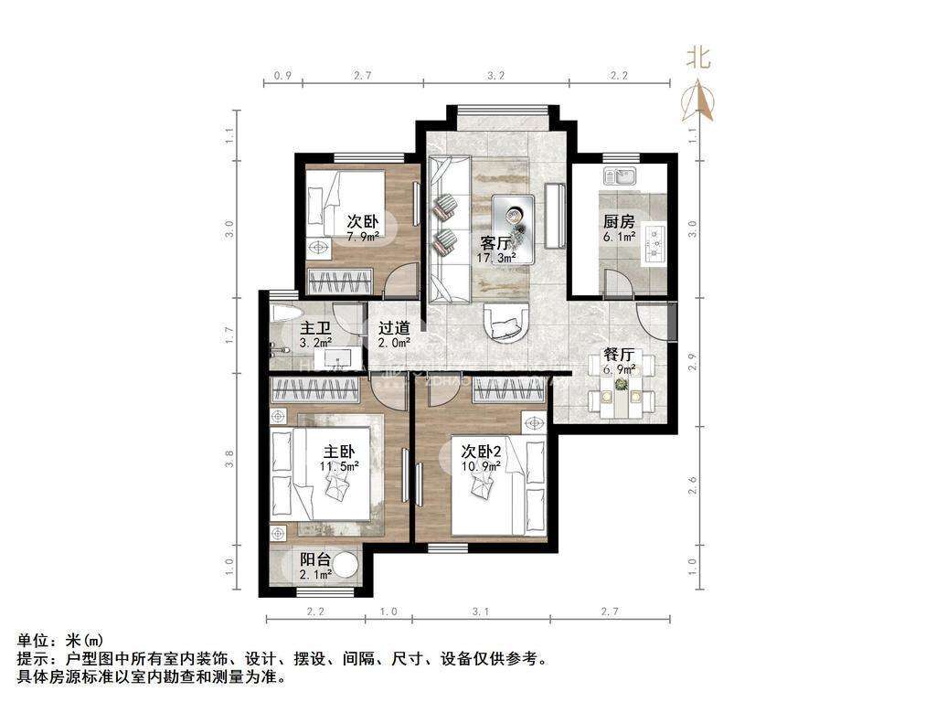 2、户型优势:3室2厅,南北卧室,客厅方正好用,单元对讲门,大院传达,安全性高!