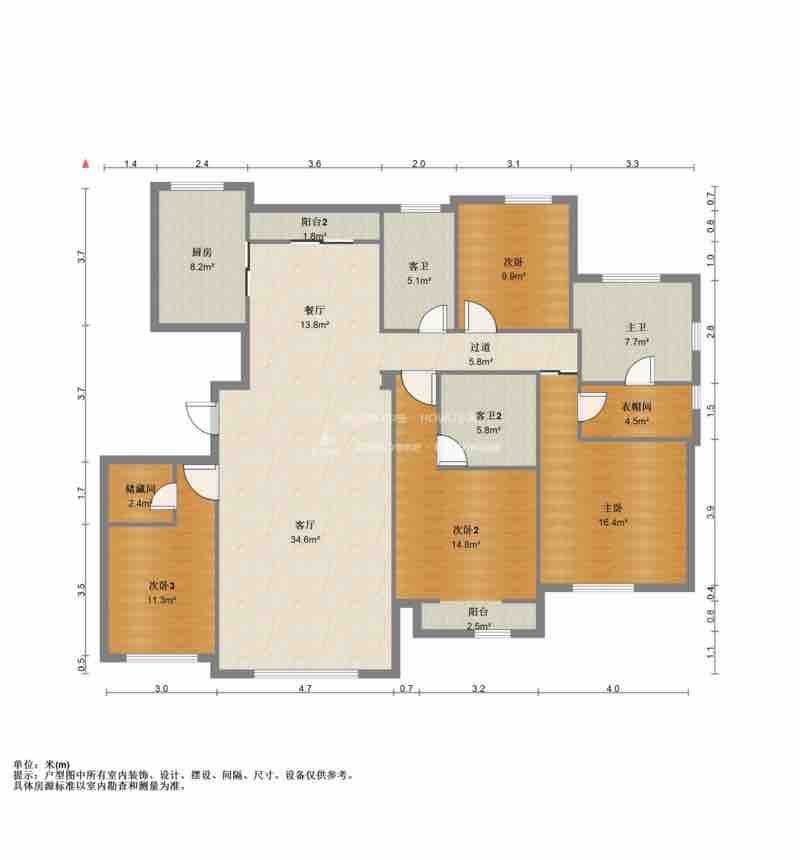 厅室4室2厅3卫2阳台