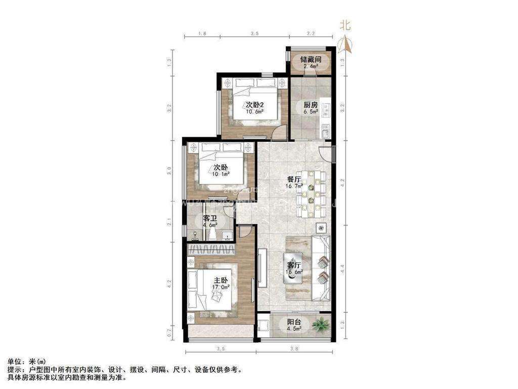 2、户型优势:南北卧室,客厅方正好用,单元对讲门,大院传达,安全性高!