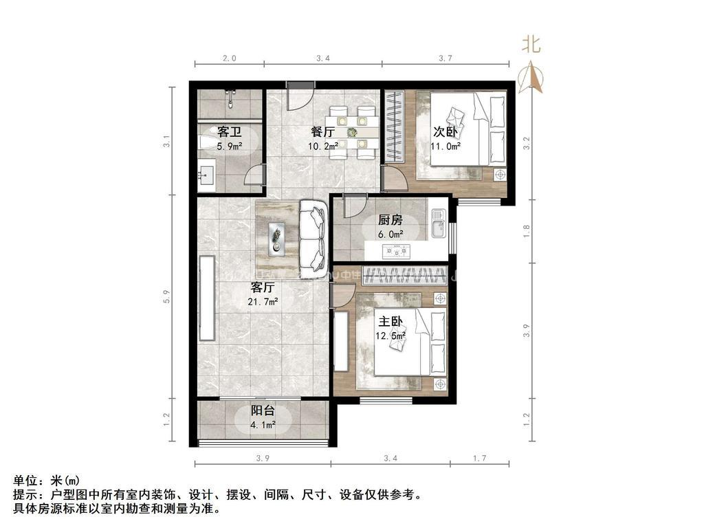 朝向南北 建筑面积90㎡