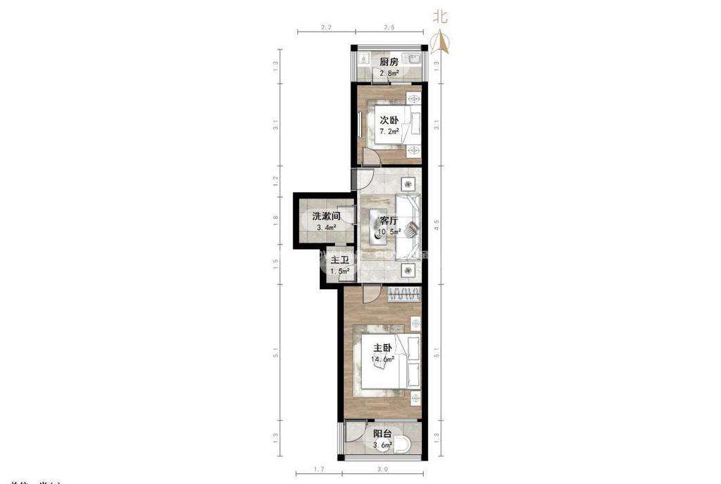 厅室2室1厅1卫1阳台