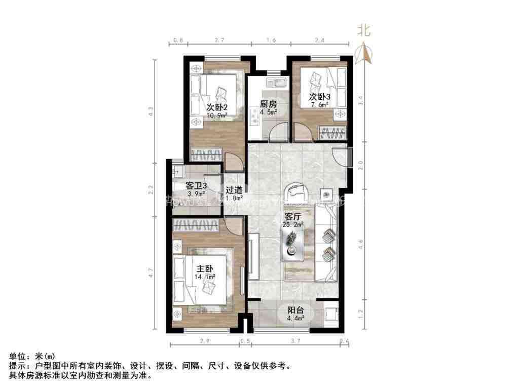 厅室3室2厅1卫1阳台