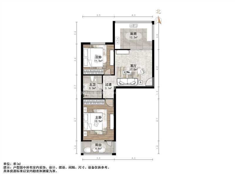 朝向南北 建筑面积80㎡