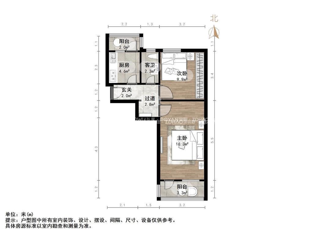 厅室2室1厅1卫1阳台
