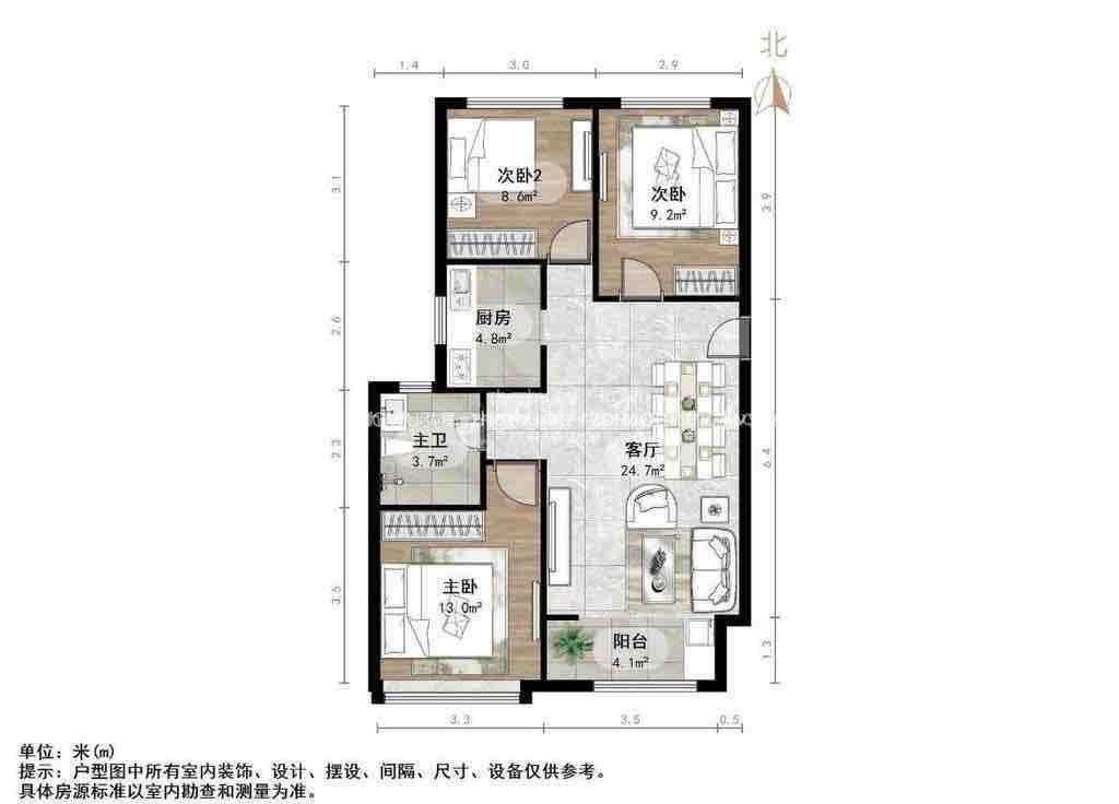 朝向南北 建筑面积95.63㎡