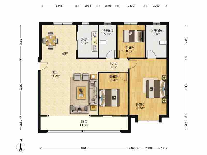 厅室3室2厅2卫2阳台
