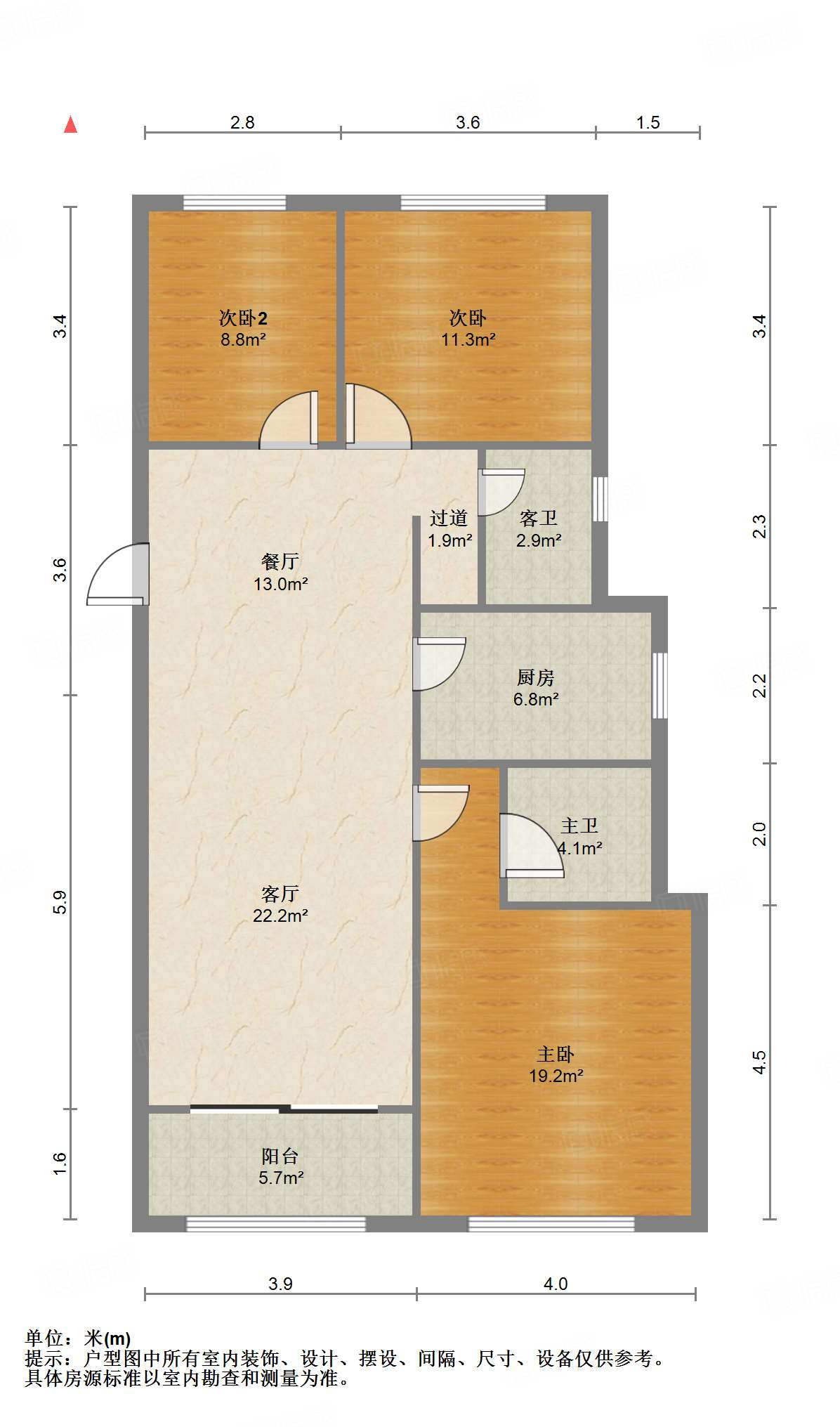 厅室3室2厅2卫1阳台