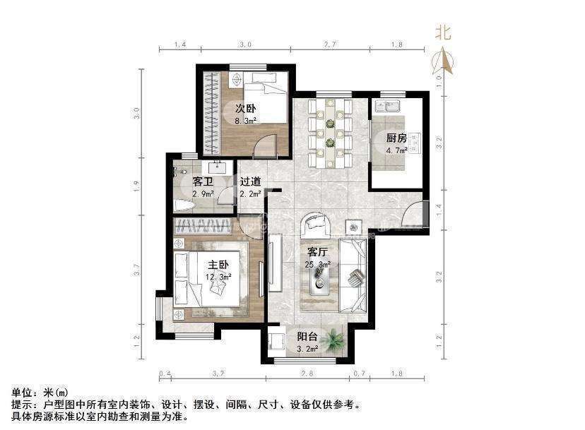 2、户型优势:南北卧室,客厅方正好用,单元对讲门,大院传达,安全性高!