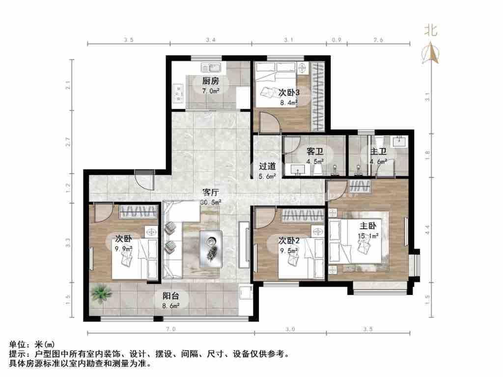 厅室4室2厅2卫1阳台