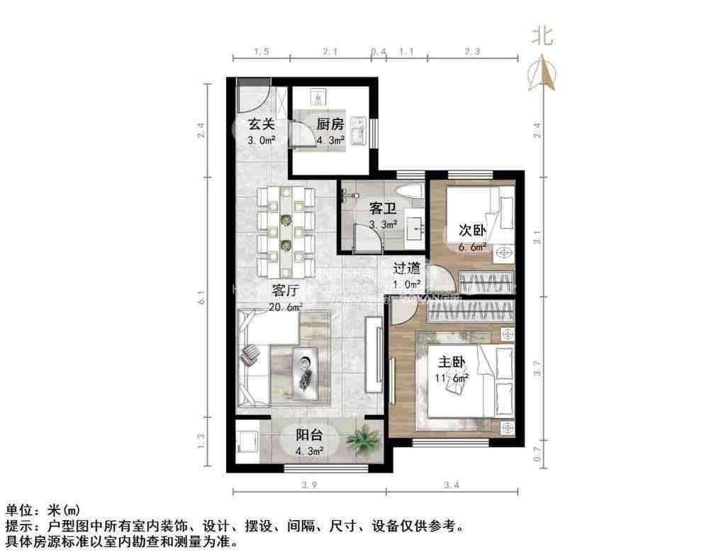 厅室2室2厅1卫1阳台