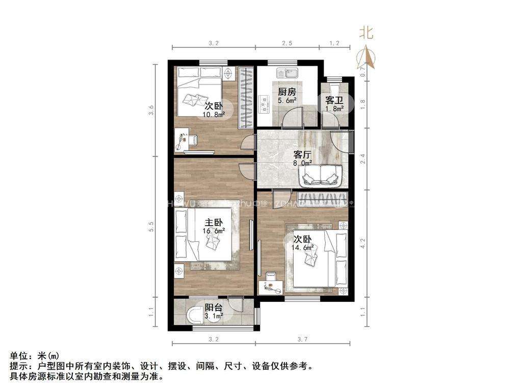 2、户型优势:厅,南北卧室,客厅方正好用,单元对讲门,大院传达,安全性高!