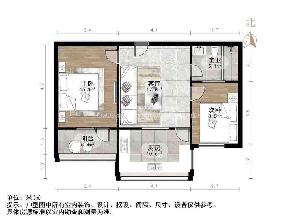 厅室2室2厅1卫1阳台