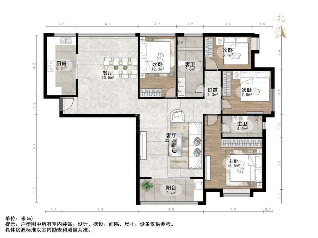 朝向南北 建筑面积169.53㎡