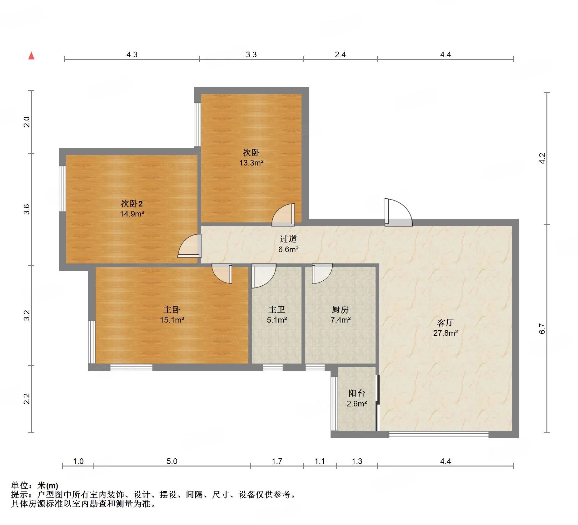 厅室3室1厅1卫0阳台