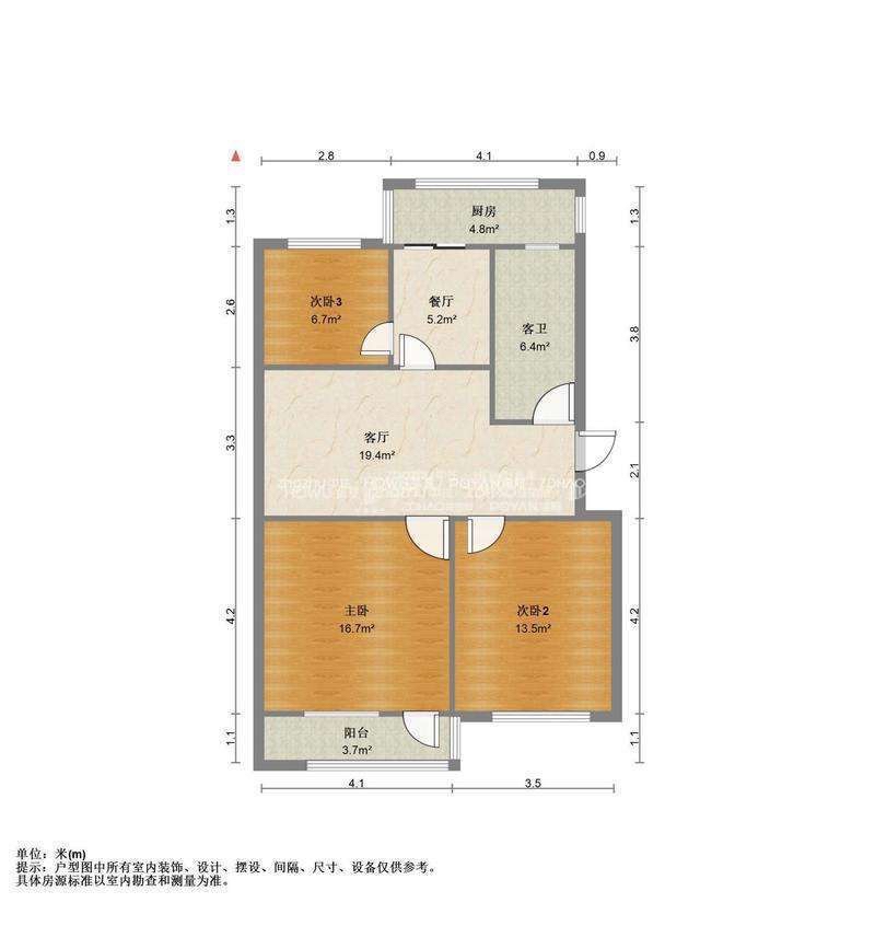 厅室3室2厅1卫1阳台