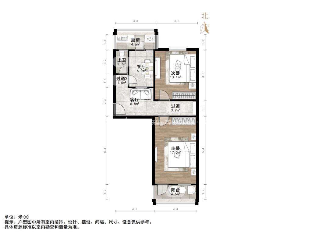 厅室2室1厅1卫1阳台