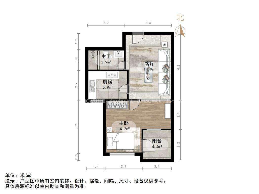 厅室1室1厅1卫1阳台