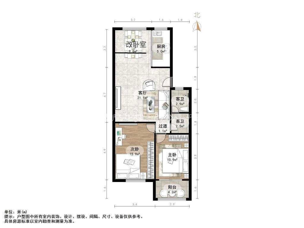 朝向南北 建筑面积82㎡