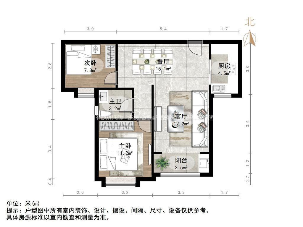 厅室2室2厅1卫1阳台