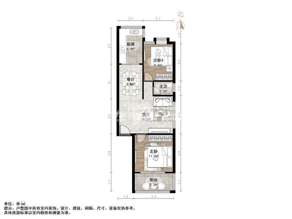朝向南北 建筑面积74.75㎡