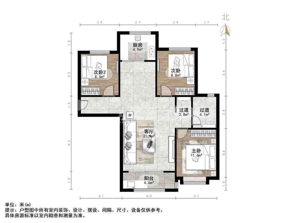 2、户型优势:室厅,南北卧室,客厅方正好用,单元对讲门,大院传达,安全性高!