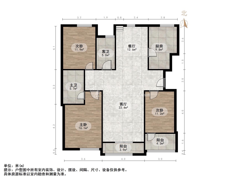 厅室3室2厅2卫2阳台