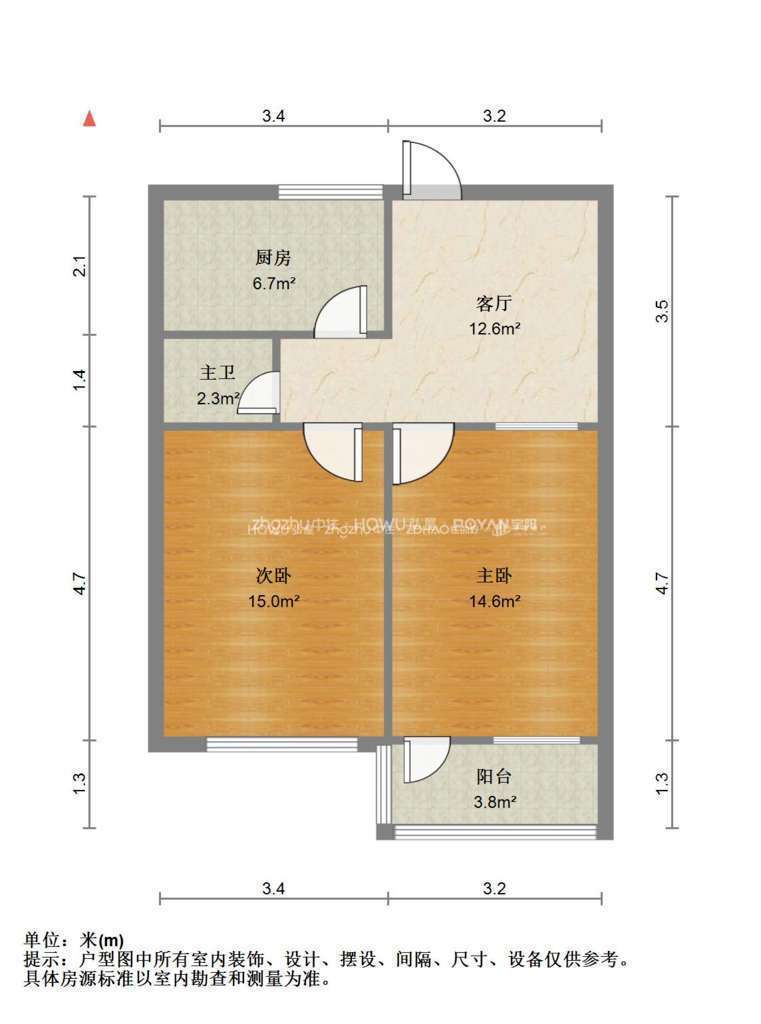 厅室2室1厅1卫1阳台