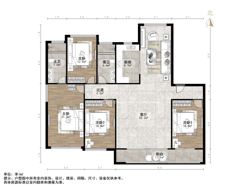 厅室3室2厅2卫2阳台