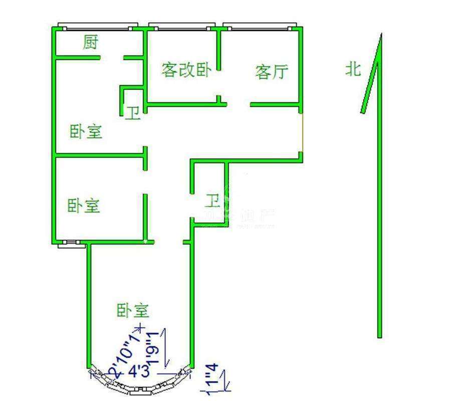 2、户型优势:3室2厅,南北卧室,客厅方正好用,单元对讲门,大院传达,安全性高!