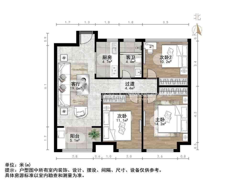 朝向南北 建筑面积91.36㎡