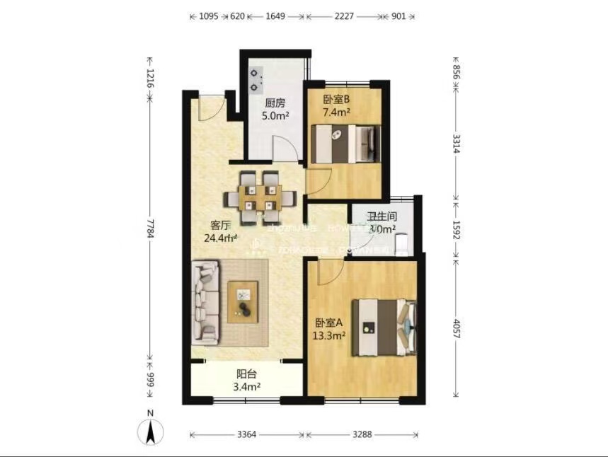 朝向南北 建筑面积78㎡
