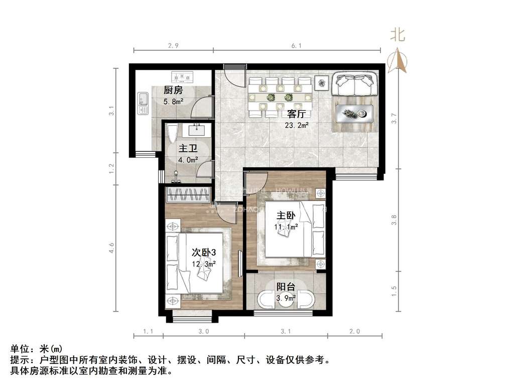 2、户型优势:室厅,南北卧室,客厅方正好用,单元对讲门,大院传达,安全性高!