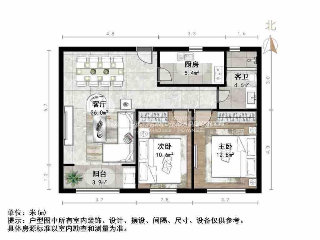 厅室2室2厅1卫1阳台