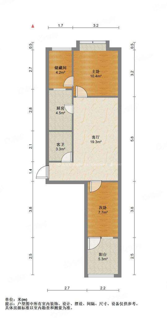 厅室2室1厅1卫1阳台