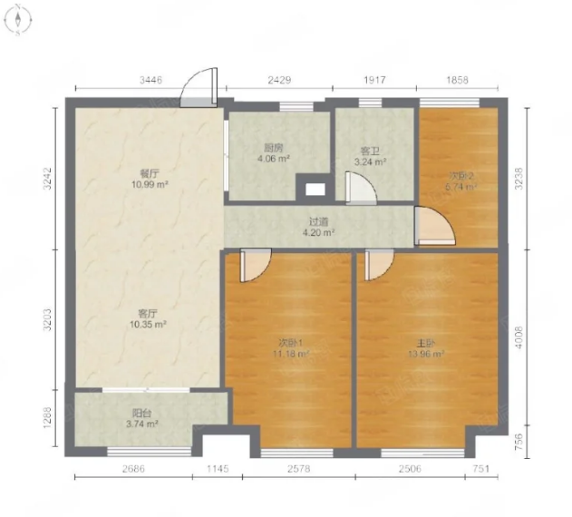 厅室3室2厅1卫1阳台