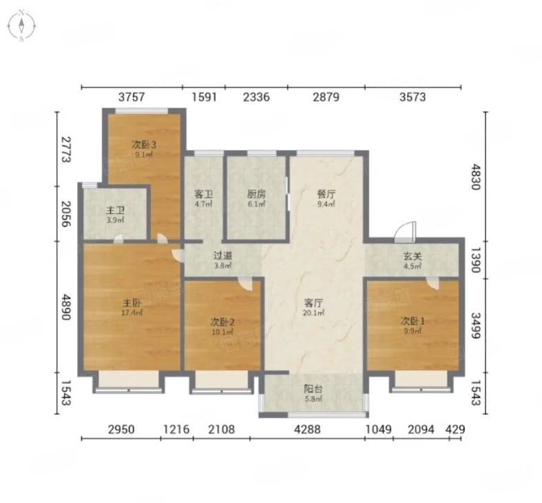 厅室4室2厅2卫1阳台