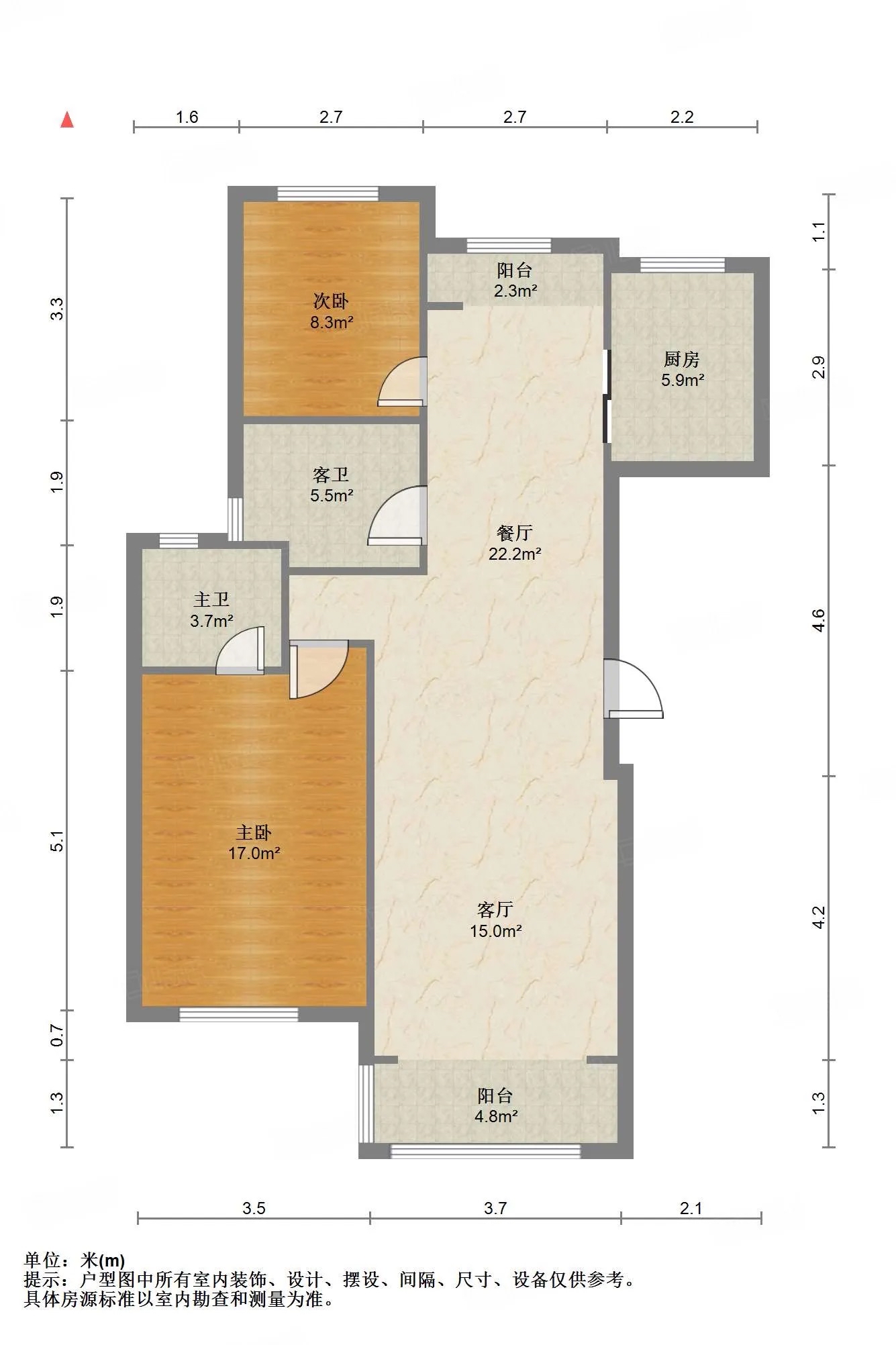 厅室2室2厅2卫1阳台