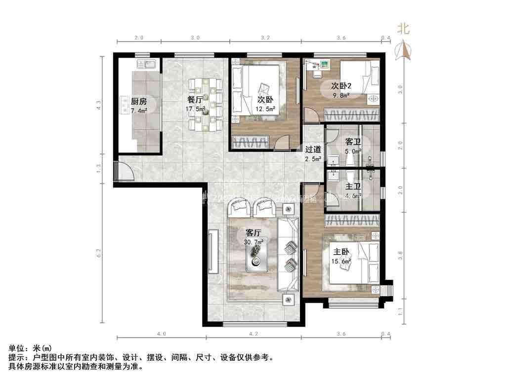 厅室3室2厅2卫1阳台