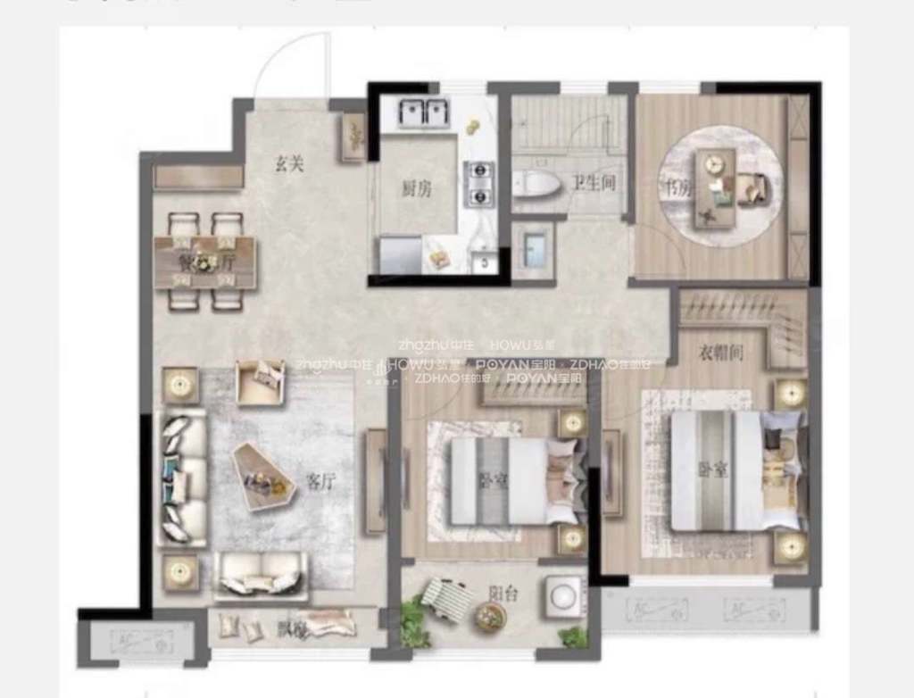 厅室3室2厅1卫1阳台