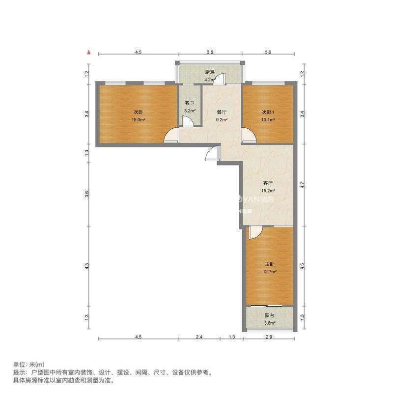 厅室3室2厅1卫1阳台