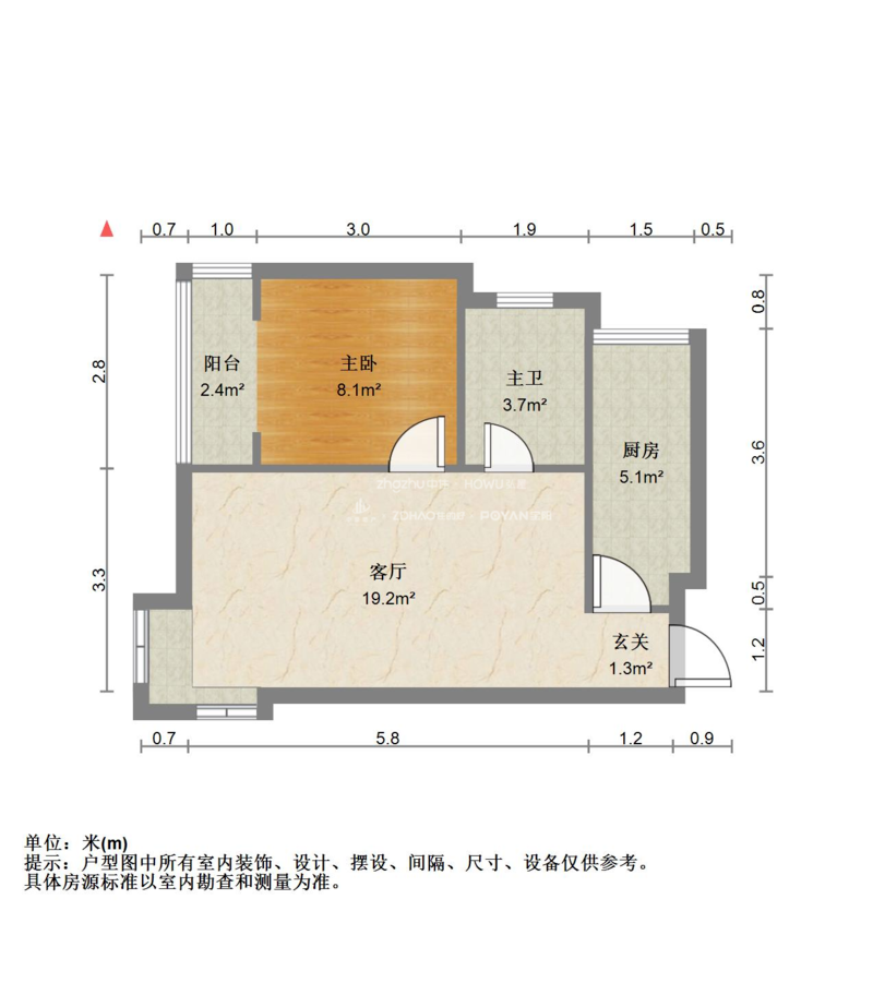 厅室1室1厅1卫0阳台