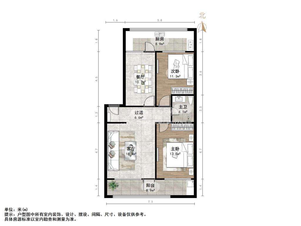 2、户型优势:室厅,南北卧室,客厅方正好用,单元对讲门,大院传达,安全性高!