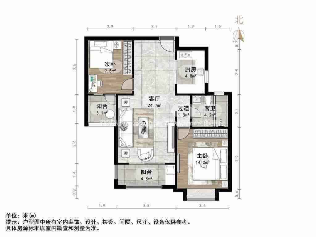 朝向南北 建筑面积98㎡