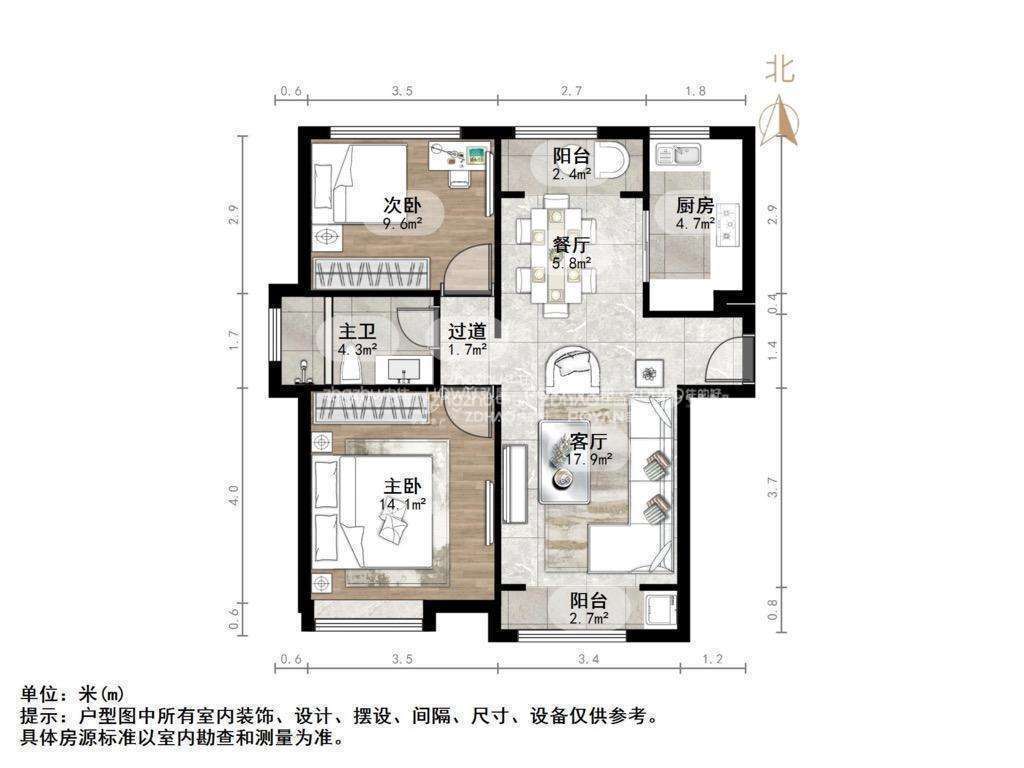 2、户型优势:南北卧室,客厅方正好用,单元对讲门,大院传达,安全性高!