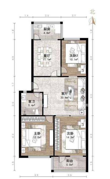 户型方正南北通透随时看房方便
